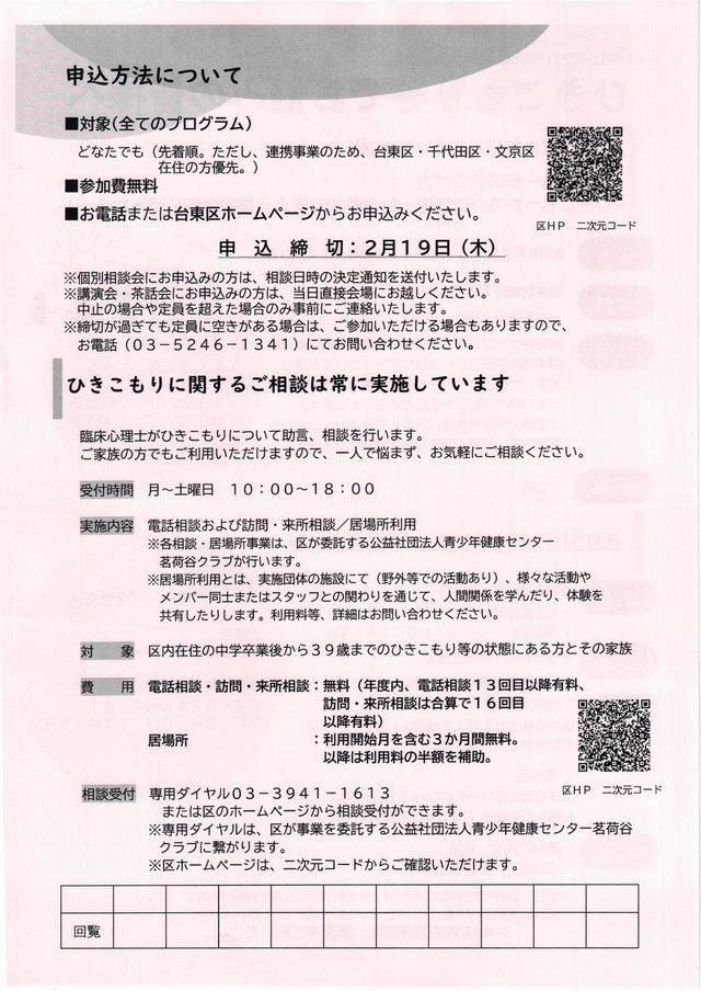 ひきこもり等でお悩みの皆様へ