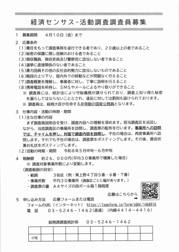 経済センサス調査員募集